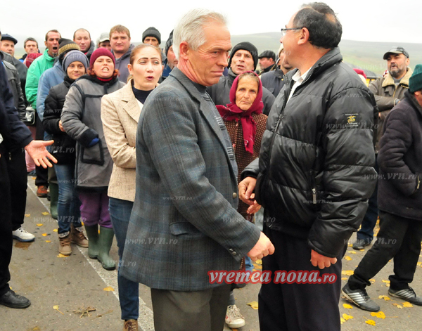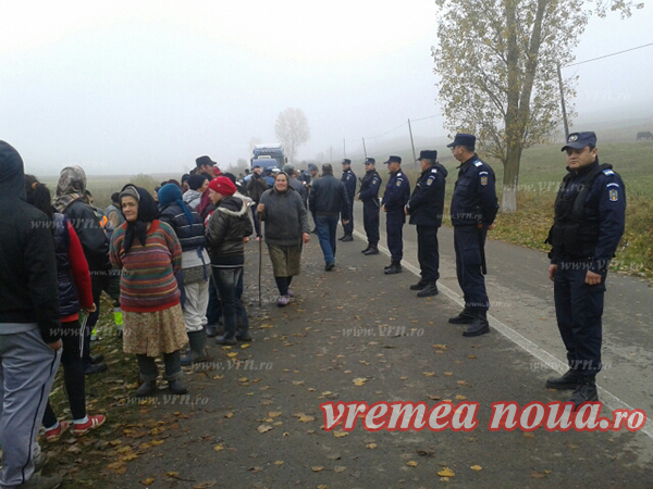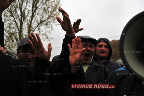 UPDATE Ora: 17:03– Corespondentul de la ziarul local Vremea Noua a declarat pentru Nasul tv ca la aceasta ora sunt aproximativ 500 de protestatari. Acesta a mai spus ca jandarmii se pregatesc sa intervina pentru a dispersa protestatarii. Oamenii scandeaza: “Hotii! Jos Chevron! Pe aici nu se trece! Vrem sa traim”
