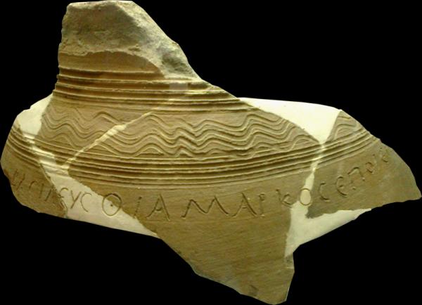 ca proprietar al atelierului în care s-a lucrat vasul. Pe cât de irelevantă în sine este terminaţia, pe atât de interesantă este menţionarea, într-o scriere autentică, contemporană, a unui rege geto-dac Tiamarcos, în nord-vestul Olteniei, pe locul viitoarei Dacia Malvensis! I.I.Russu confirmă că numele dinastului dac este de cea mai pură factură tracică şi tot el, este cel care a descifrat inscripţia.